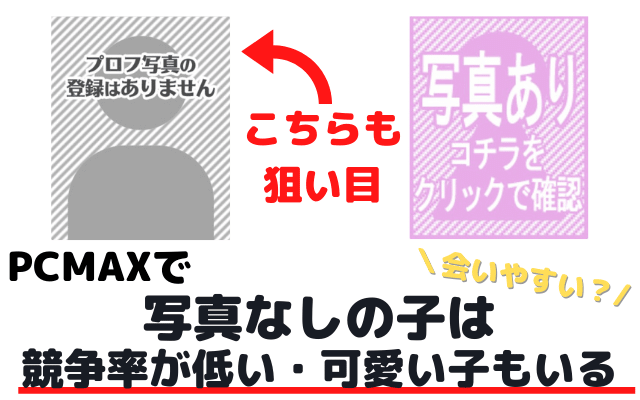PCMAXで写真なしの子は競争率が低く、しかも可愛い子の可能性があるわけです。